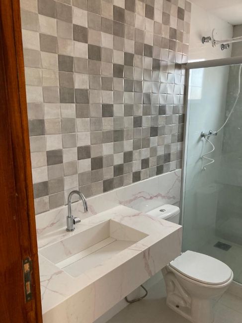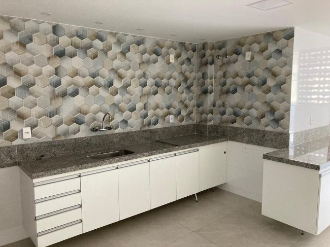 3 quartos (sendo 2 suítes), sala, varanda gourmet, banheiro social, cozinha com armários, área de serviço e banheiro de serviço.